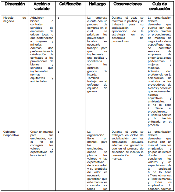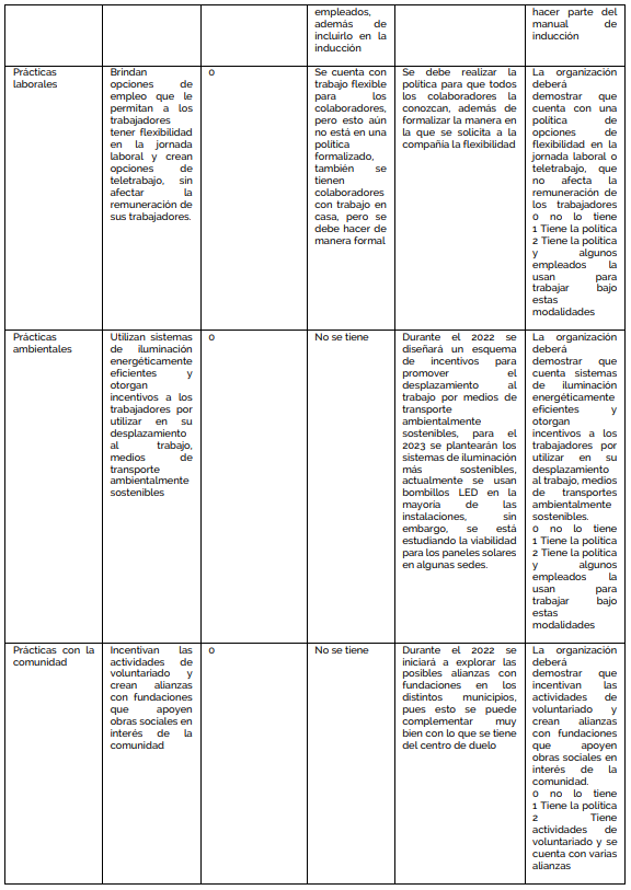 Respecto a esta dimensión, la empresa se propuso como acción dentro de su objeto social: